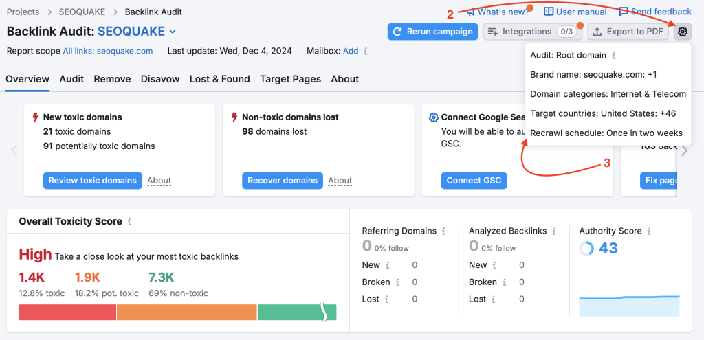 To set up your account, simply register and provide basic information. After logging in, you’ll gain access to the main dashboard. Here, you can set up your project, link your Google Analytics account, and start tracking your website’s SEO health and performance metrics. With your account configured, you can begin using the full range of features to improve SEO.